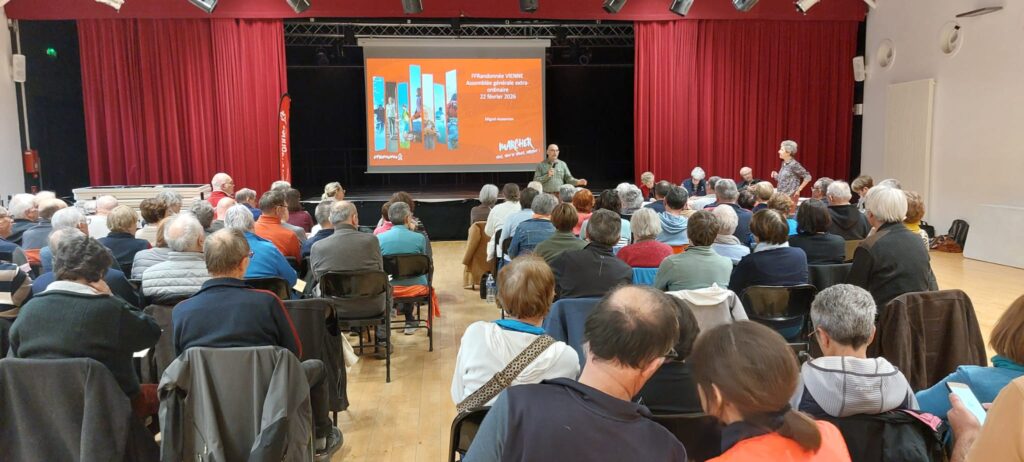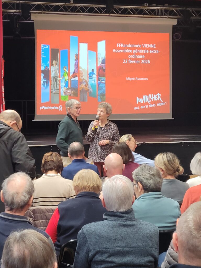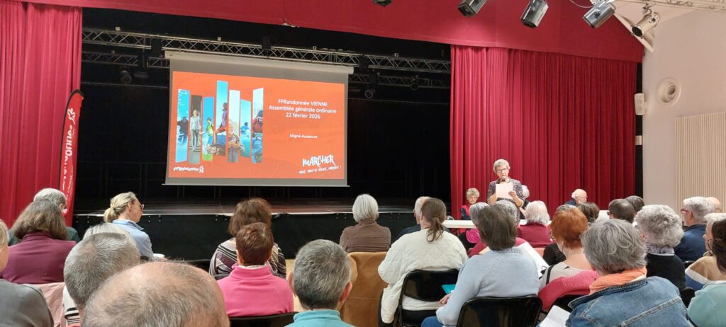 La FFRandonnée Vienne a tenu son Assemblée générale le 22 février à Migné-Auxances, accueillie par le club affilié local, ALMA. Fort de ses 34 clubs affiliés dans le département et ses 2800 licenciés, le comité départemental, avant le temps institutionnel, a proposé à ses adhérents de se retrouver à 9 h pour un programme de randonnées de diverses distances, le long de l’Auxances puis de se réunir dans la salle Jean Ferrat pour un apéritif.