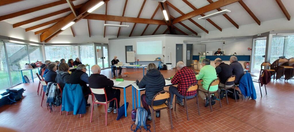 Ce sont 13 licenciés issus de 7 clubs différents qui étaient présents à Smarves, au Bois de St Pierre le 5 mars pour se former à la préparation et à la conduite de randonnées avec l’application fédérale MaRando.