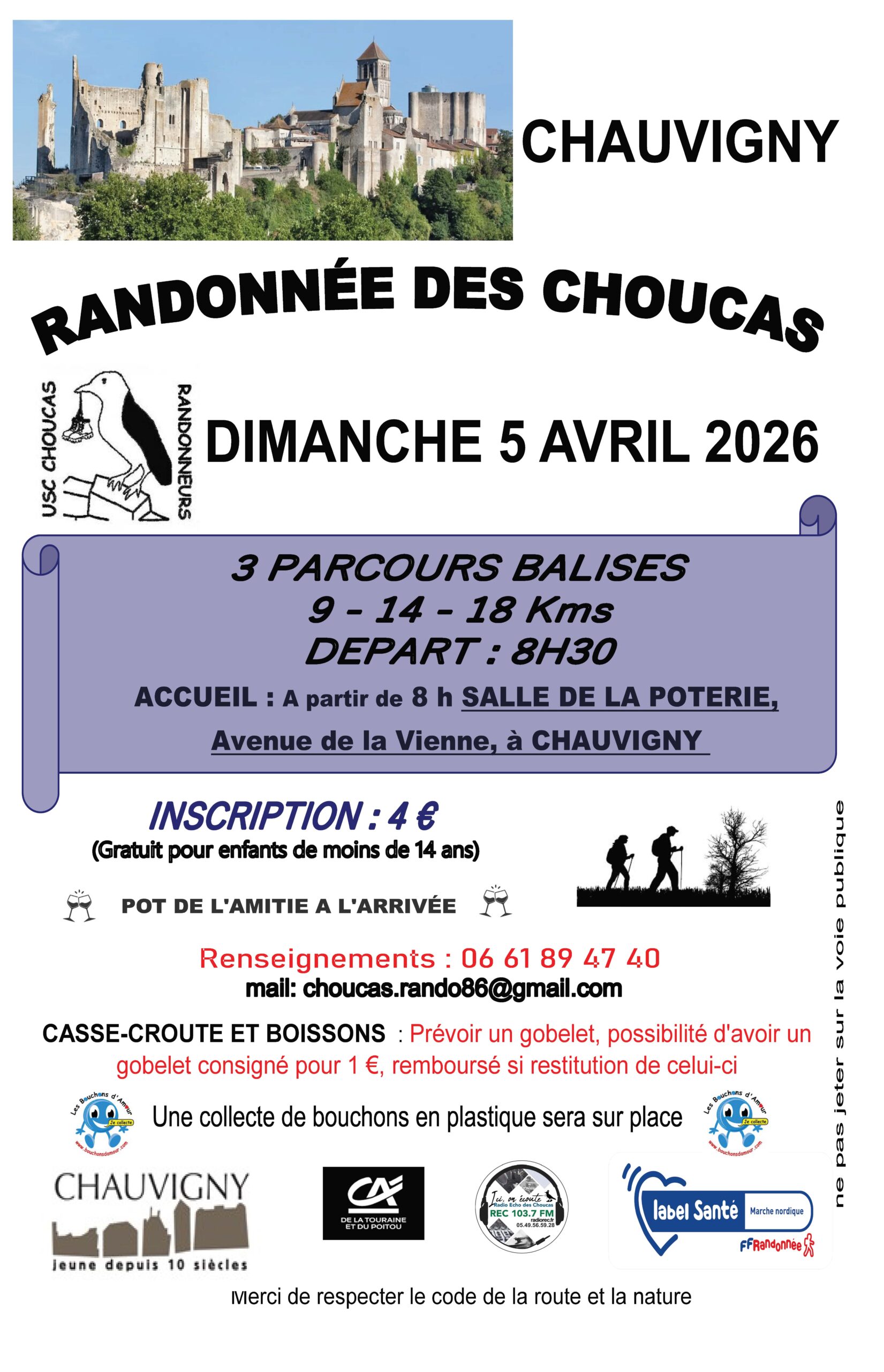 L’association les « CHOUCAS RANDONNEURS » propose le dimanche 5 avril 2026 une marche ouverte au grand public.